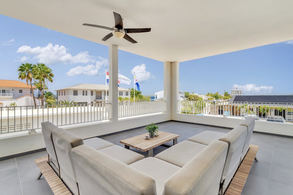 Добро пожаловать в пентхаус в Elegancia, великолепную квартиру на верхнем этаже с видом на океан. Просторные две спальни (обе с кондиционером), две ванные комнаты, в нескольких минутах ходьбы от ресторанов и баров в центре Кралендейка, в одном квартале от магазина для дайвинга. Выйдите прямо на улицу, чтобы прогуляться вдоль моря, насладиться закатом с балкона, отдохнуть в бассейне или насладиться комфортной и просторной гостиной и обеденной зоной.