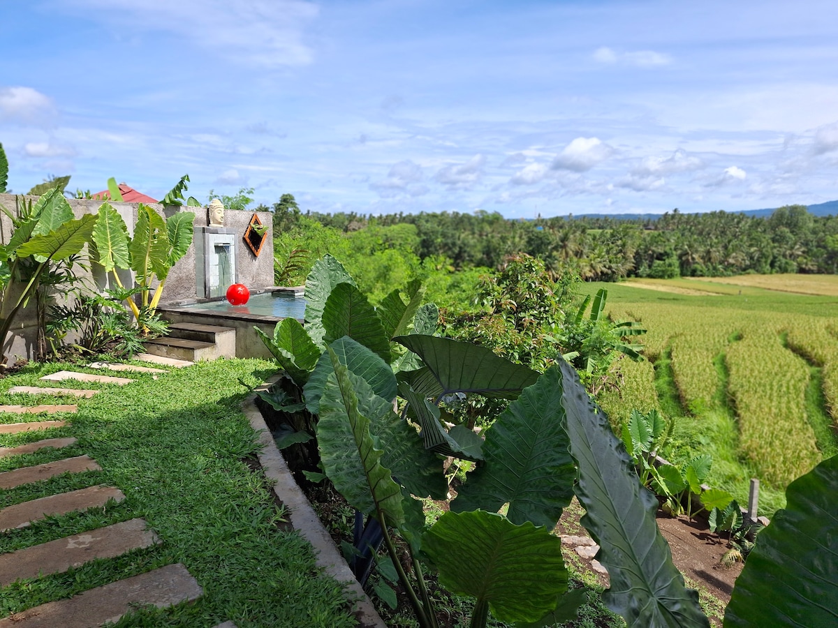 Насладитесь прекрасной обстановкой этого романтического места на природе. «Отдохните в этом очаровательном крошечном доме на природе с потрясающими видами на пышные рисовые террасы и величественные горы. Насладитесь собственным бассейном, где можно расслабиться под открытым небом в окружении безмятежных пейзажей. Это романтическое убежище предлагает идеальное сочетание комфорта и уединения, что делает его идиллическим местом для отдыха и общения с природой.