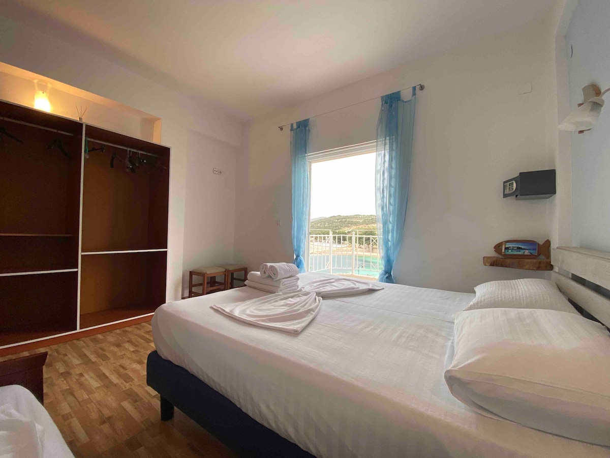 Номер на берегу моря с боковым видом на море Этот очаровательный номер на берегу моря расположен всего в нескольких шагах от лучших пляжей Саранды. Из окон открывается прекрасный вид на Ионическое море. Наслаждайтесь успокаивающим бризом на собственном балконе, отдыхайте с комфортом и пользуйтесь современными удобствами, находясь всего в нескольких минутах ходьбы от оживленного побережья города. Идеально подходит для тех, кто хочет отдохнуть у моря, исследуя центр Саранды.
