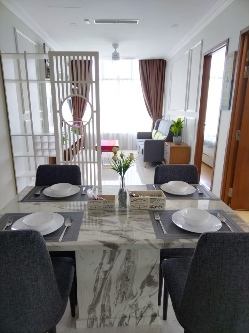 Недавно отремонтированная современная квартира площадью 1800 кв. футов с 3 спальнями в самом сердце торгового района KL. Прямо напротив ТЦ Pavilion Mall. Хорошее соотношение цены и качества, идеально подходит для бюджетной семьи. Главная спальня: 1 двуспальная кровать размера King size, 1 двуспальный диван-кровать (опция) с собственной ванной. 2-й BR: 1 двуспальная кровать размера King size, 1 односпальная кровать (опция) с примыкающей собственной ванной комнатой. 3rd BR: 1 Queen Queen 3-я ванная комната - это общая ванная комната. Гости получат доступ к KLCC, B.Bintang, Jalan Alor - все это займет 10 минут ходьбы. Доступна бесплатная парковка.