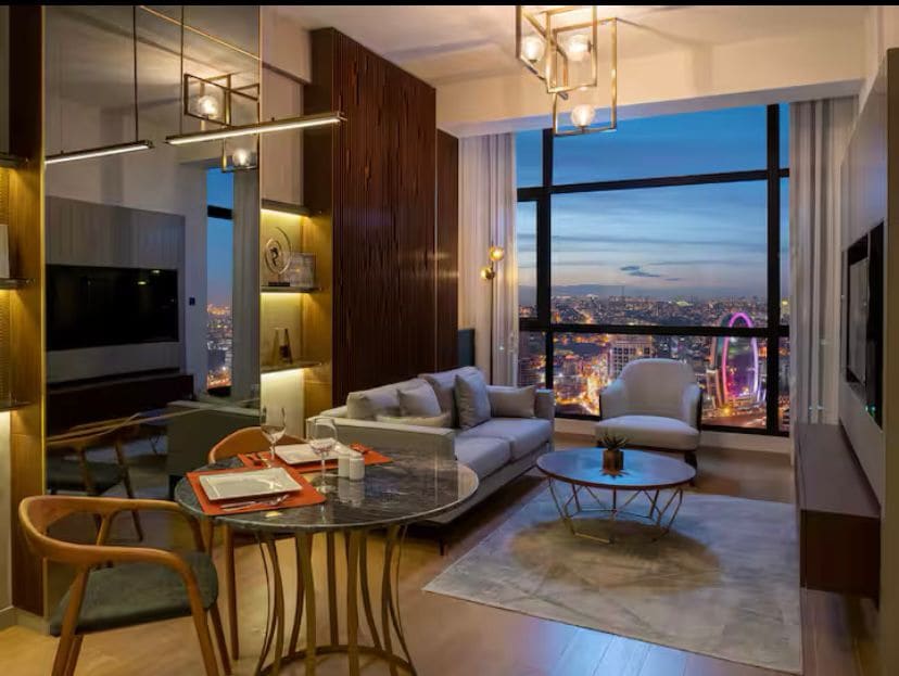 Welcome to this modern 1-bedroom apartment at, located in the vibrant Güneşli / Basin Ekspres area. 🌿This stylish apartment offers spacious living with a fully equipped kitchen, access to wellness facilities including an indoor pool, spa, sauna, and fitness center, and comes with daily free housekeeping service. We wish you a pleasant stay! ✨