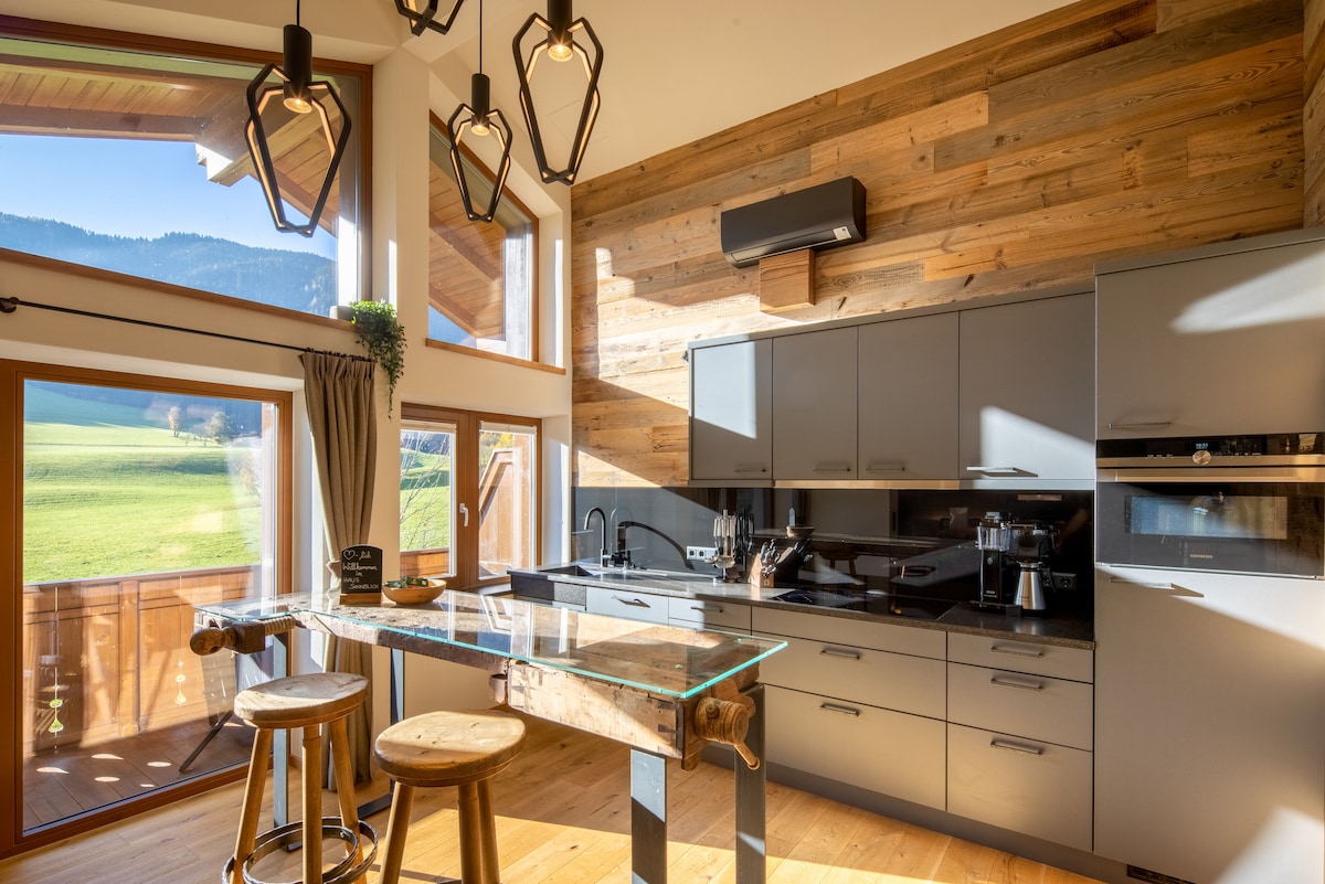 The Kaiserfleckerl-Mountainview combines modern, sustainable architecture in a great attention to detail. With two bedrooms, a sofa bed on the gallery, a modern kitchen, a fireplace and two terraces, the Kaiserfleckerl-Loft offers space for families and friends to unwind. The gondola to the Wilder Kaiser - Brixental ski area can be reached in 5 minutes by ski bus or car. Whether active or relaxed - the Kaiserfleckerl-Loft is the exclusive & perfect home for your time out in the mountains