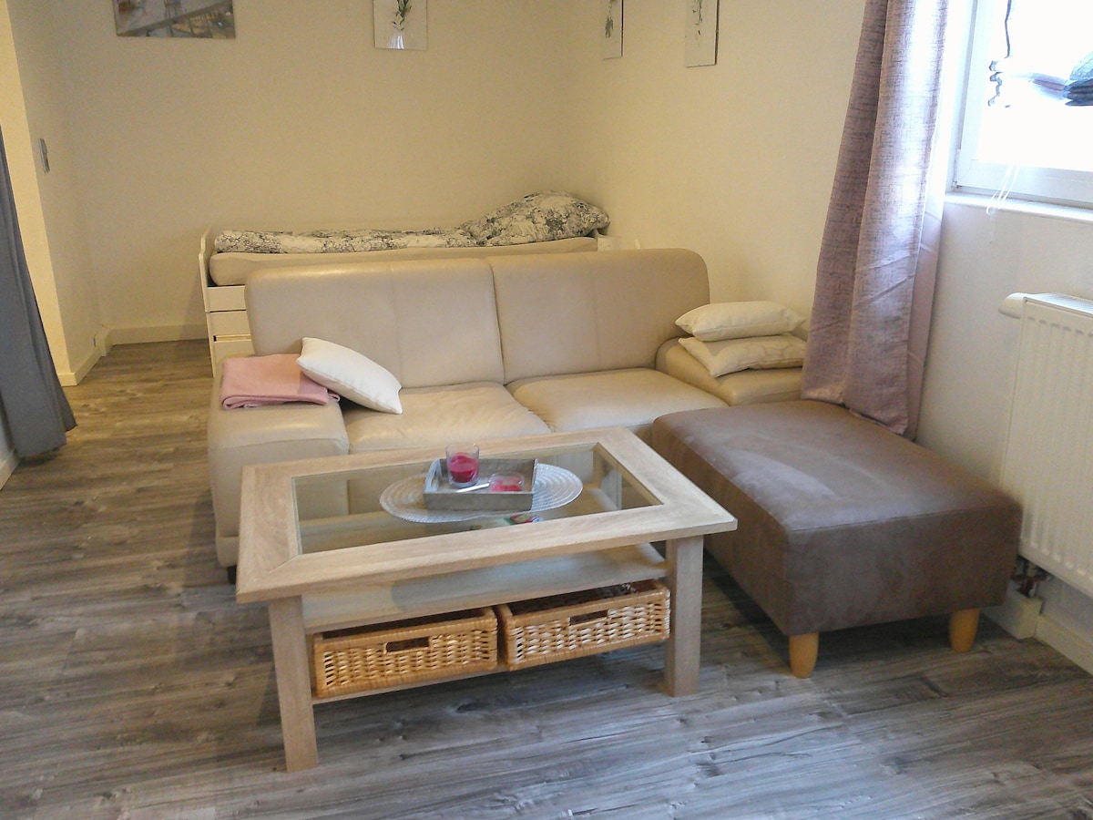 Die Ferienwohnung ist ein ca 40qm großes 1-Zimmer Apartment mit eingerichteter Küchenzeile und Esstisch; 3 Schlafgelegenheiten und einer ausziehbaren Couch; Bad mit Wanne; TV und WLAN; inkl. Bettwäsche und Handtücher. Nichtraucherzimmer. Grillplatz am Haus. Parkmöglichkeiten befinden sich vor dem Haus. Die Zimmer sind neu renoviert. Die Außenfassade des Gebäudes ist derzeit unverputzt. Wir bitten dies zu entschuldigen.