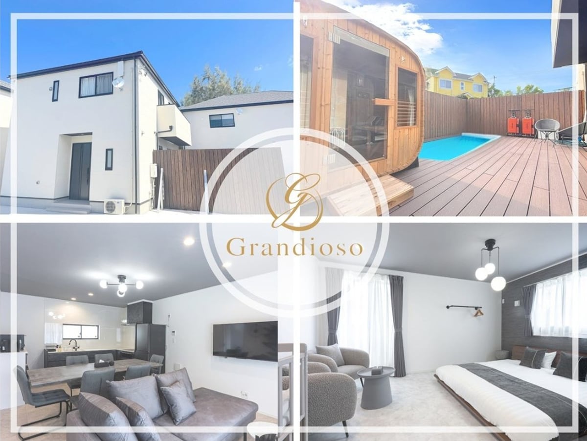 [Новое здание (максимум 16 человек)] 3 спальни (120 кв. м) / 8 кроватей / бассейн и сауна / барбекю / парковка на 2 машины / Онна 14A