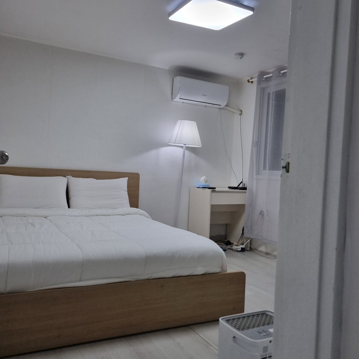 Оно расположено в центре Тондэмуна и Чонно, поэтому до него очень легко добраться на метро, и здесь есть различные возможности для знакомства с историей, культурой, шопингом и едой. Проведите время с семьей в тишине и комфорте в центре города. 2 м x 1 м — стол на 8 человек — лучшее рабочее место. Линия 1, станция Хоэги — 10 минут пешком! Рядом с университетом Кёнхи и медицинским центром Кёнхи. Две комнаты (1 столовая, 1 спальня, ванная комната, кухня). столовая + спальня + кухня/гостиная + ванная комната комната со столом — односпальная кровать или матрас спальня — двуспальная кровать размера Queen size Во всех комнатах установлен новый кондиционер! Если вам нужен напольный коврик, сообщите нам об этом заранее!!! (Возможно отдельное спальное место) Метро (линия 1, станция «Хоэги») в 10 минутах ходьбы. (Станция «Чхоннянни») 2 минуты пешком от университета Кёнги. 2 минуты пешком от Медицинского центра Кёнхи 1 минута ходьбы от автобусной остановки — Магазин шаговой доступности — 1 минута пешком. 1 минута ходьбы от продуктового магазина. Прачечная в 1 минуте ходьбы. — Парковка разрешена. Пожалуйста, свяжитесь с нами ~! *