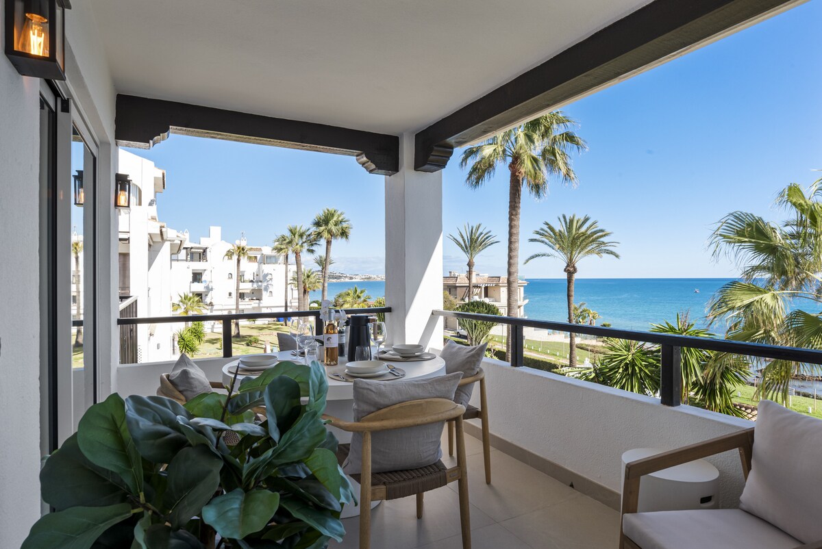Квартира расположена на первом этаже с прямым доступом к пляжу Ривьера-дель-Соль (Михас, Малага). В двух спальнях с двуспальной кроватью размера Queen size и двумя односпальными кроватями также есть бесплатный Wi-Fi, кондиционер, обогреватель, гостиная и меблированная кухня. Расположено рядом с стоянкой такси, автобусами и двумя пляжными ресторанами. В самом комплексе есть большой бассейн, шезлонги и теннисный корт с фантастическим видом на океан.