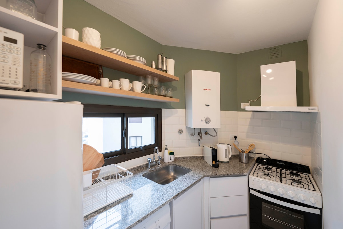 Hermoso departamento con detalles de diseño de autor y obras de arte originales. 📍 Está en un piso 7, con un balcón que tiene una vista increíble, justo frente a la histórica Plaza Colón. Además, estás a solo 15 cuadras del Cabildo, en una ubicación privilegiada para conocer lo mejor de Córdoba ☕ En tu estadía tenés disponible para preparar café/mate cocido o mate. 🕓 La entrada es entre las 15:00 y las 20:00 hs, la salida entre las 08:00 y las 11:00 hs y la entrega de llave es en persona.