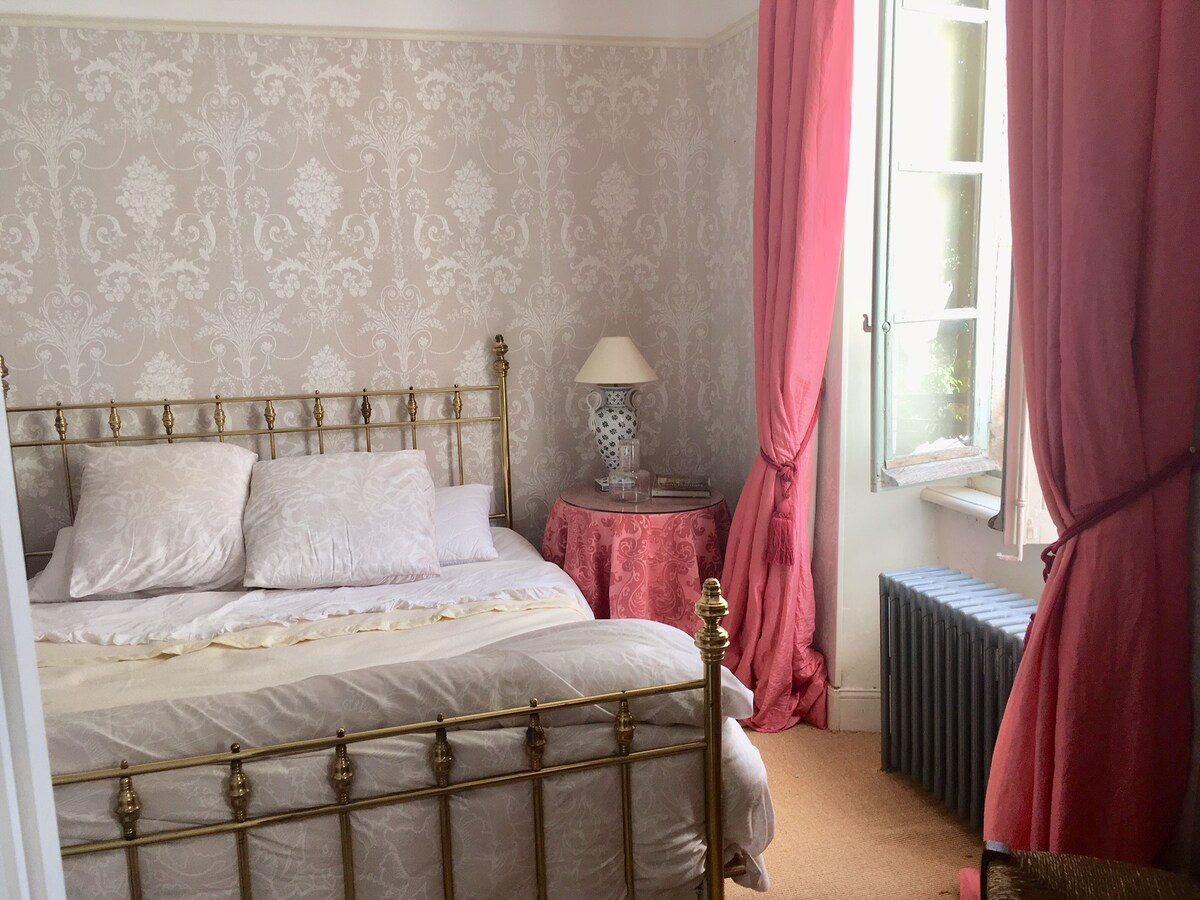 Желтый, напоминание о нарцисса и цвете благополучия, добавляет тонизирующую заметку в эту успокаивающую комнату. Настоящий кокон (это самая маленькая из пяти спален). Из оконч открывается очаровательный вид на деревню с видом на восьмиугольную колокольню церкви. Оздоровительный вариант ( джакузи, бассейн, халат, сандалии) стоит 15 евро в день с человека.
