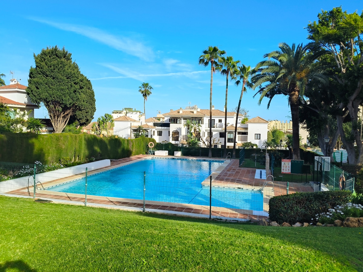 Красивая квартира с террасой в Кариуэле, Торремолинос, недалеко от пляжа (всего в 5 минутах ходьбы), с общим бассейном* и зоной солярия. До супермаркета 3 минуты пешком; полностью оборудованная кухня, кондиционер горячий /холодный, терраса с садовой мебелью в общем коридоре, двуспальная кровать и диван-лонг. Железнодорожная остановка «Montemar alto» в 10 минутах ходьбы, а перед зданием - автобусная остановка. Высокоскоростной частный Wi-Fi. БАССЕЙН ДОСТУПЕН ТОЛЬКО В ЛЕТНИЕ МЕСЯЦЫ.