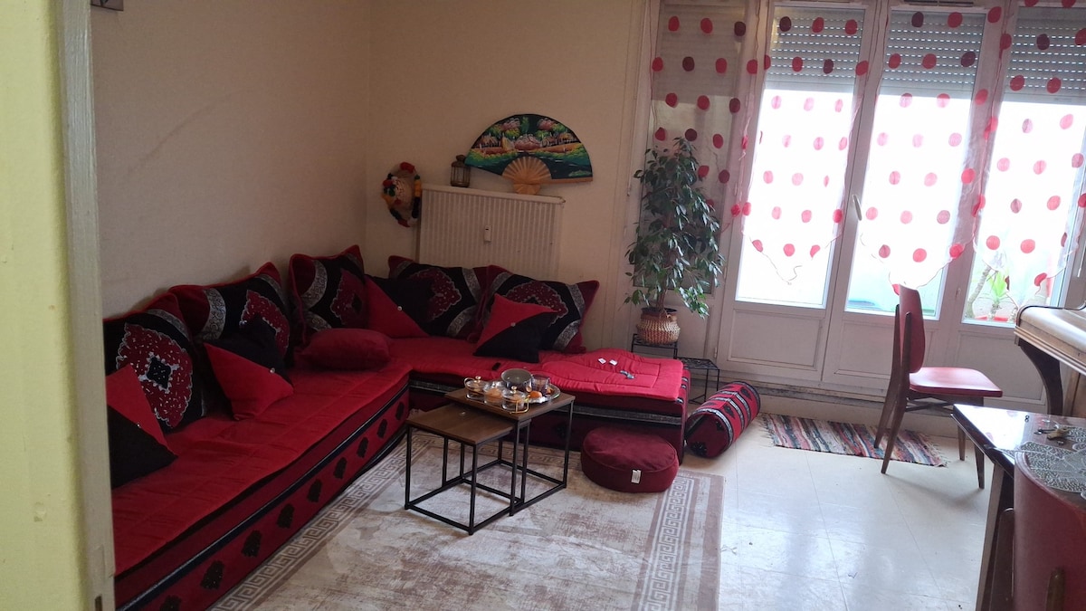 -Appartement en rez de chaussée, balcon, place de parking souterrain ! -Cuisine récente et moderne, bien équipée, éléments neufs, cafetiere a filtres, bouilloire. Café, thé, sucre a dispo.. -Salle de bain avec serviettes, gel douche, shampooing, coton, produits, lessive.. -Chambre, lit 2metres, draps, couverture coussins, grande armoire penderie, fer a repasser, aspirateur 🛄 Heures d'arrivée et depart flexible 🛜 Wifi