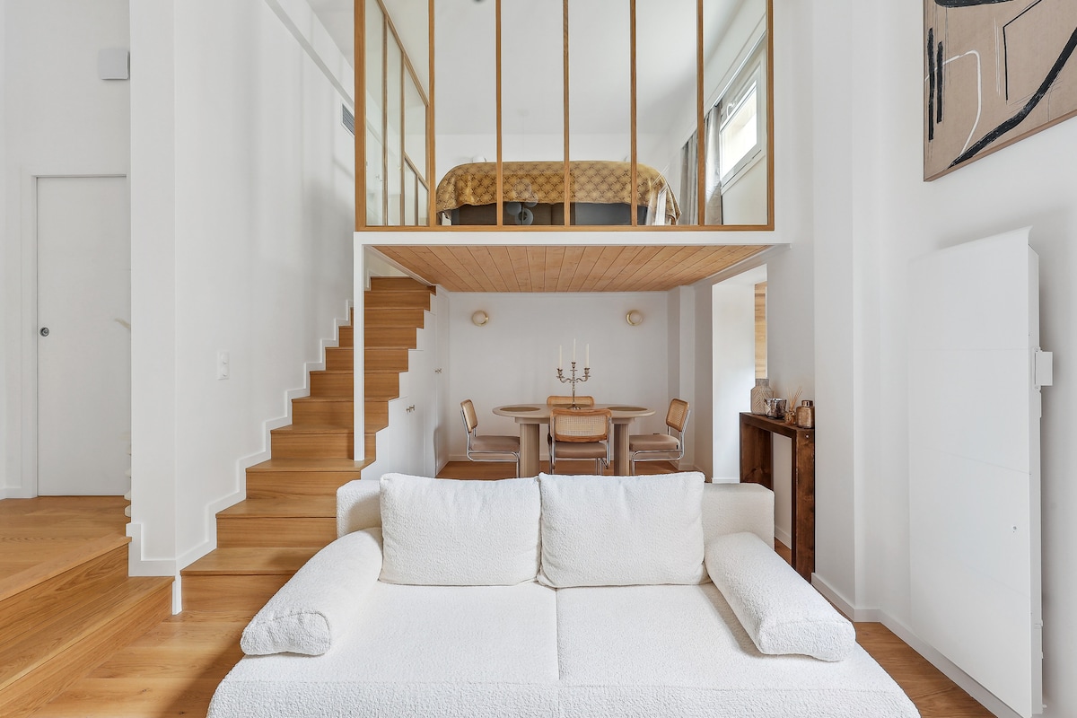 Эта изысканная квартира площадью 110 кв. м с паркетным полом, изысканной мебелью и обильным естественным освещением предлагает яркую, элегантную, теплую и роскошную атмосферу. Квартира с камином и лепниной, сочетающая очарование, спокойствие и комфорт, расположена в одном из старейших проходов в историческом центре Парижа. В квартире есть официальная лицензия на управление туристическим жильем. Так что это абсолютно законно.
