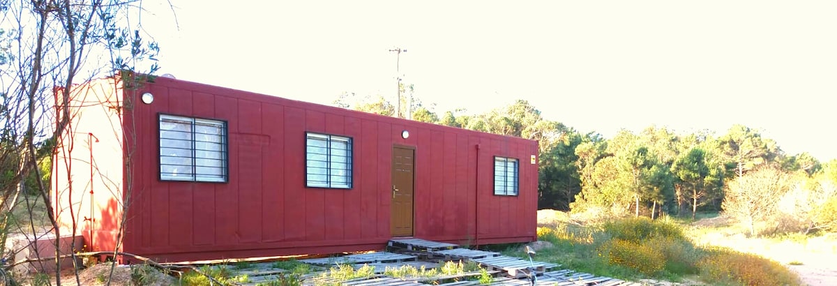 КОНТЕЙНЕРНЫЙ ДОМ URUCU IN SPA LA EMERALD, ROCHA, идеально подходит для 2 человек, расположен в местности и природной среде, лесистый, очень тихий, в 12 кварталах от берега океана. В помещении есть атмосфера, объединяющая гостиную, кухню и спальню, а также ванную комнату. У входа в дом есть крытая территория на открытом воздухе. Он расположен в 7 кварталах от одного из спа-салонов самообслуживания.