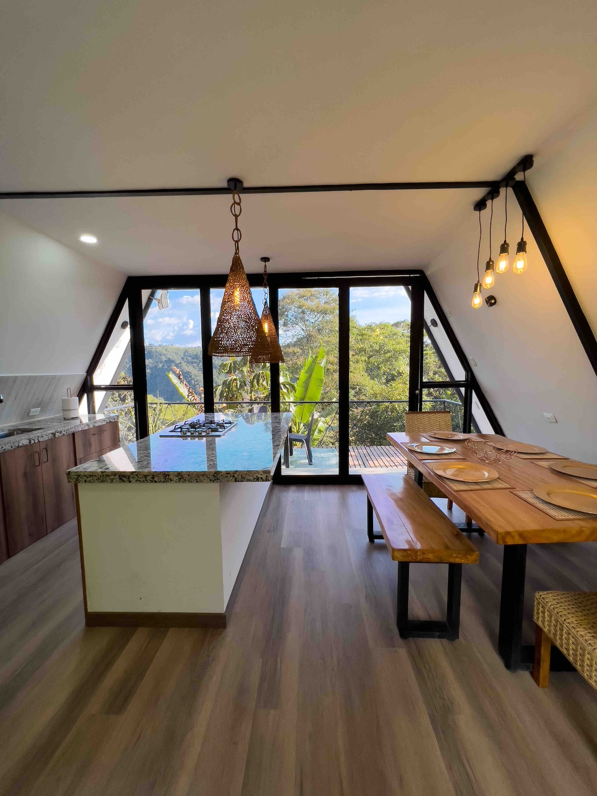 Отдохните в загородном доме, окруженном природой и тишиной, всего в 5 минутах от главного парка Филандии. Наслаждайтесь ночами у костра, кофейными пейзажами и просторными помещениями, которыми можно поделиться с семьей или друзьями. Дизайнерский отдых в центре колумбийского кофейного ландшафта. Почувствуйте спокойствие и природу в чистом виде. Насладитесь панорамным видом на лес и долины Киндио. Незабываемые рассветы, звездное небо и волшебные закаты