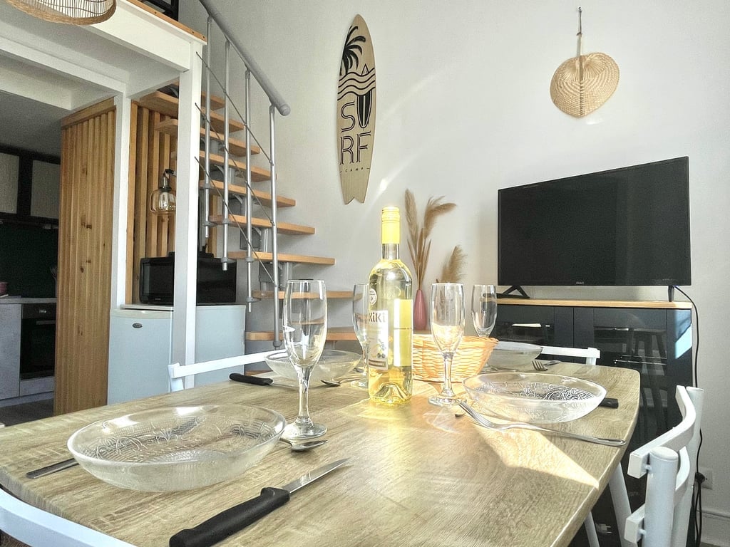 Чтобы приятно провести время, ноги в воде. Лес и море в 50 метрах Дом площадью 28 кв. м со спальней в стиле лофт Гарантированное спокойствие. Терраса: 25 м² с барбекю, садовой мебелью и шезлонгом (летний период). Вам нравится пляж: вам просто нужно перейти улицу, чтобы быть довольным. Вы любите природу: от мезонета можно отправиться в поход. Вы довольно спортивны: курс в сосновом лесу прямо перед парусным клубом в конце дороги.