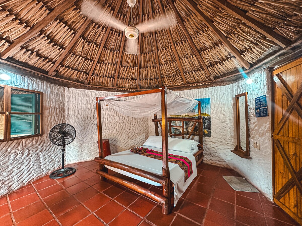Отдохните в тихом месте на природе. Наслаждайтесь спокойствием этого комфортабельного домика, расположенного в естественной обстановке, но полностью оборудованного, где комфорт сочетается с незабываемыми пейзажами: впереди Карибское море, а позади вдали величественная Сьерра-Невада-де-Санта-Марта. Она расположена в тихом районе и на уединенных пляжах. Идеально подходит для отдыха. Его приподнятая конструкция позволяет вам наслаждаться прекрасным видом на море и постоянным легким бризом. До пляжа 150 метров.