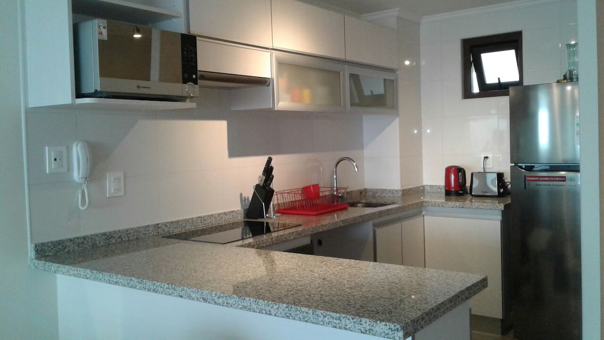 Побег в Кокимбо Уютная квартира на 5 человек перед пляжем, с 2 спальнями (двуспальная кровать, хижина и диван-кровать), полностью оборудованной кухней, Wi-Fi, стиральной/сушильной машиной, круглосуточным наблюдением, частной парковкой и лифтом (13-й этаж). Жилье расположено всего в 2 кварталах от торгового центра Vivo, Centro, супермаркетов, автовокзала, бухты, рядом с местной ярмаркой и такими развлечениями, как прогулки на пиратских лодках. Идеально подходит для отдыха, наслаждения морем и знакомства с окрестностями. Забронируйте жилье и наслаждайтесь Впечатлением!