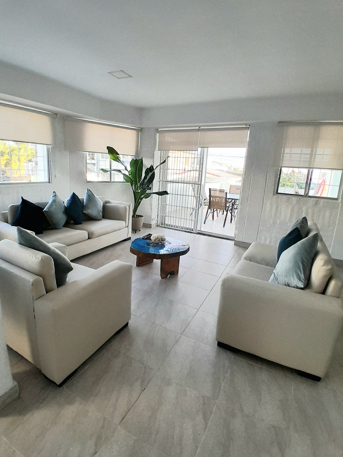 Здравствуйте !Приезжайте отдохнуть под звуки моря! В этом департаменте есть 3 комнаты, в которых могут с комфортом войти до 8 человек, но может войти больше, он расположен на пляже в неволе у подножья моря, вы отключитесь, и вы будете жить незабываемым семейным отдыхом и даже идеально подходит для романтического отдыха, он находится в 5 минутах езды от Баллениты, в 10 минутах от Пунта-Бланки и в 10 минутах от Салинас-Малекон, поблизости также есть магазины и супермаркеты.