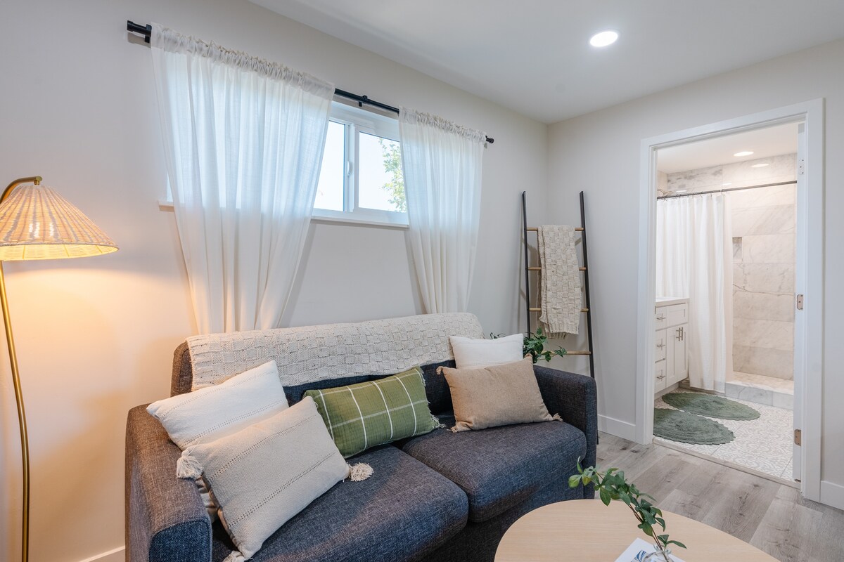 Студия расположена в тихом зеленом районе прямо в центре Ла-Месы, что дает вам отличную базу для знакомства со всем, что может предложить Сан-Диего. Внутри вы найдете светлое, наполненное солнцем пространство с шикарной кухней, гостиной/обеденной зоной открытой планировки с удобным диваном-кроватью, стильной спальней с кроватью размера Queen size и современной, сверкающей ванной комнатой со встроенной прачечной. Всего в 15 минутах ходьбы находится торговый центр с кафе, ресторанами и магазинами, а в 15 минутах езды — центр города.