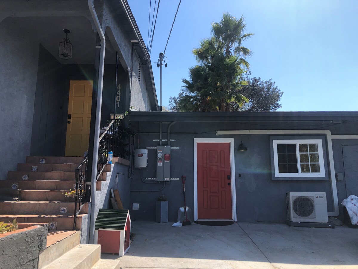 Добро пожаловать в нашу очаровательную калифорнийскую студию, которую мы спроектировали так, чтобы она была комфортной, удобной и экологичной! Он расположен на тихом переулке в пригородном районе для семейного отдыха, предлагая много уединения и парковки! Здесь есть все необходимое, включая быстрый Wi-Fi, стиральные машины и полностью оборудованная кухня. Если вы отправляетесь в приключение или отдыхаете на тихий вечер, эта студия - идеальное место. Будем рады принять вас!