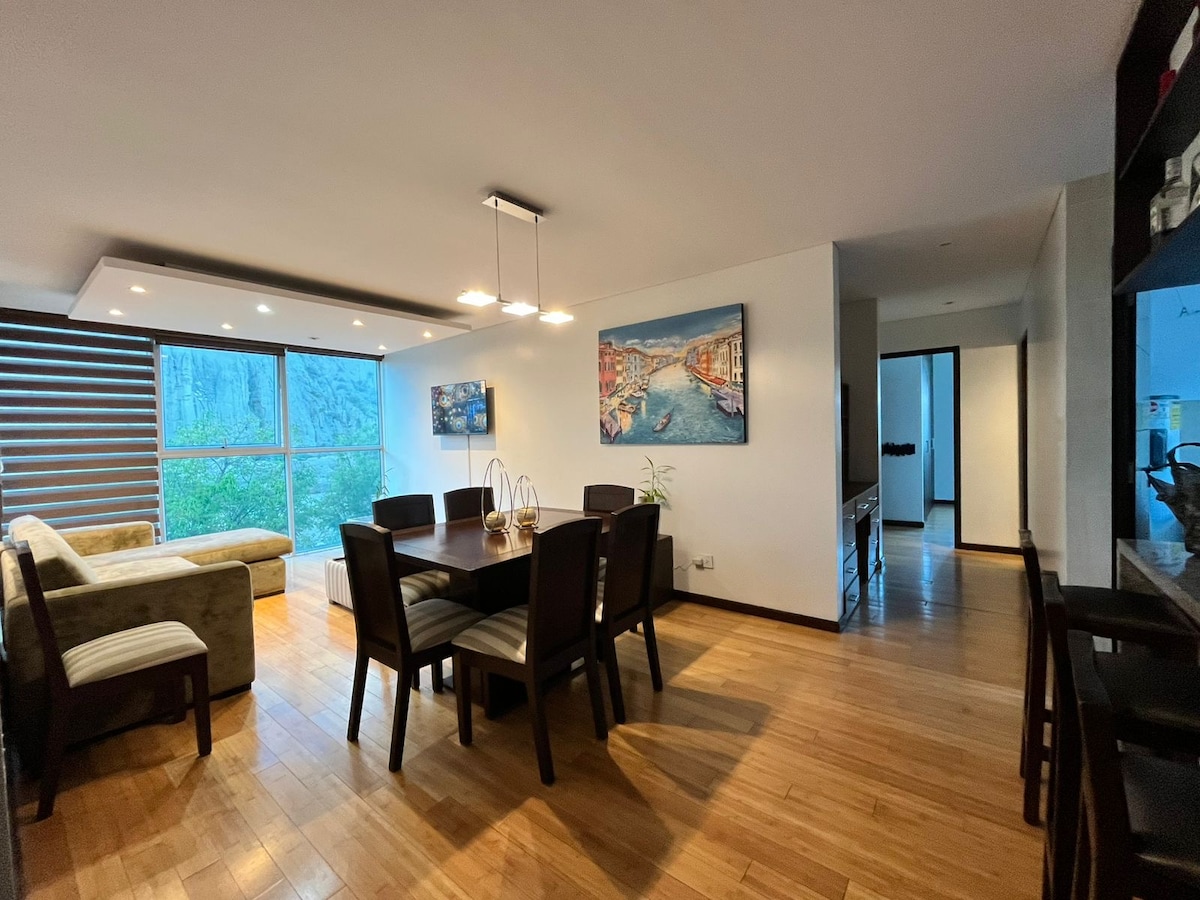 Мы будем рады приветствовать вас в нашей квартире в центре Сан-Мигеля, тихом районе для отдыха в окружении ресторанов, предлагающих всевозможные национальные и международные кулинарные впечатления. Идеально подходит для отдыха или делового отдыха. В этой квартире площадью 1076 кв. футов есть две спальни, две ванные комнаты, и она очень теплая, что важно в Ла-Пасе, потому что это город с холодным климатом.