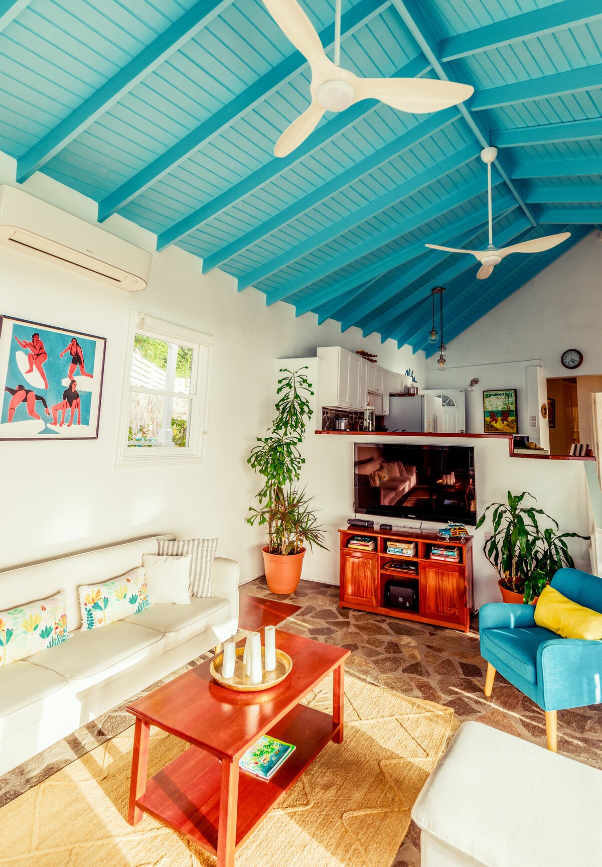 Вдохновленный непринужденной атмосферой гавайской серф-культуры, Ohana House - это легкость и знакомство с Бекией как местный житель... в конце концов, охана означает семью! С холма с видом на залив открывается вид на пляжи Принцессы Маргарет и Лоуэр-Бэй (оба находятся менее чем в 500 метрах). Благодаря открытой планировке внутри и множеству террас среди фруктовых деревьев вы мгновенно почувствуете единение с природой. Проведите дни на шезлонге в бассейне, а затем пообщайтесь под звездным небом.