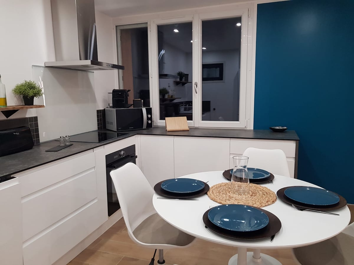 Очаровательная отремонтированная студия с красивыми современными удобствами. Жилье расположено в центре города Гап,рядом со всеми удобствами: барами, ресторанами, магазинами и развлечениями. В вашем распоряжении безопасная и частная площадь в подвале. Полностью оборудованная и функциональная кухня ( духовка, варочная панель, вытяжка, микроволновая печь, холодильник). Кофеварка Tassimo. Постельное белье новое (матрас и пружинный матрас) 190x140 см. Во время пребывания предоставляются постельное белье, шампуни и гель для душа.