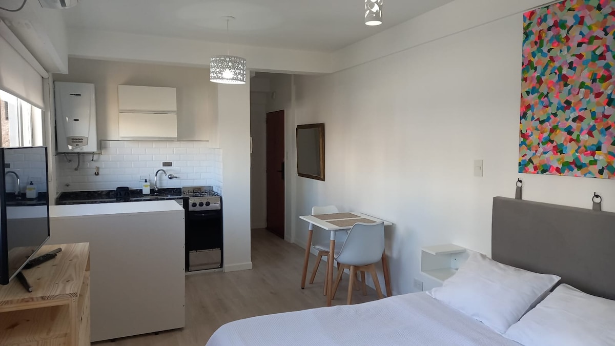 В этой светлой студии есть все необходимое для проживания в Буэнос-Айресе. Практично для отдыха, работы или деловых поездок. Вместимость: до 2 человек. Рядом с La Rural, посольством США, аэропарком и зелеными зонами города (Экопарк, Ботанический сад, Розовый сад). Рядом с торговыми центрами и ресторанами, барами и типичными кафе. Стратегическое расположение, в нескольких метрах от метро D, поезда и метробуса — с большим количеством автобусов — позволяет быстро добраться до центра Буэнос-Айреса.