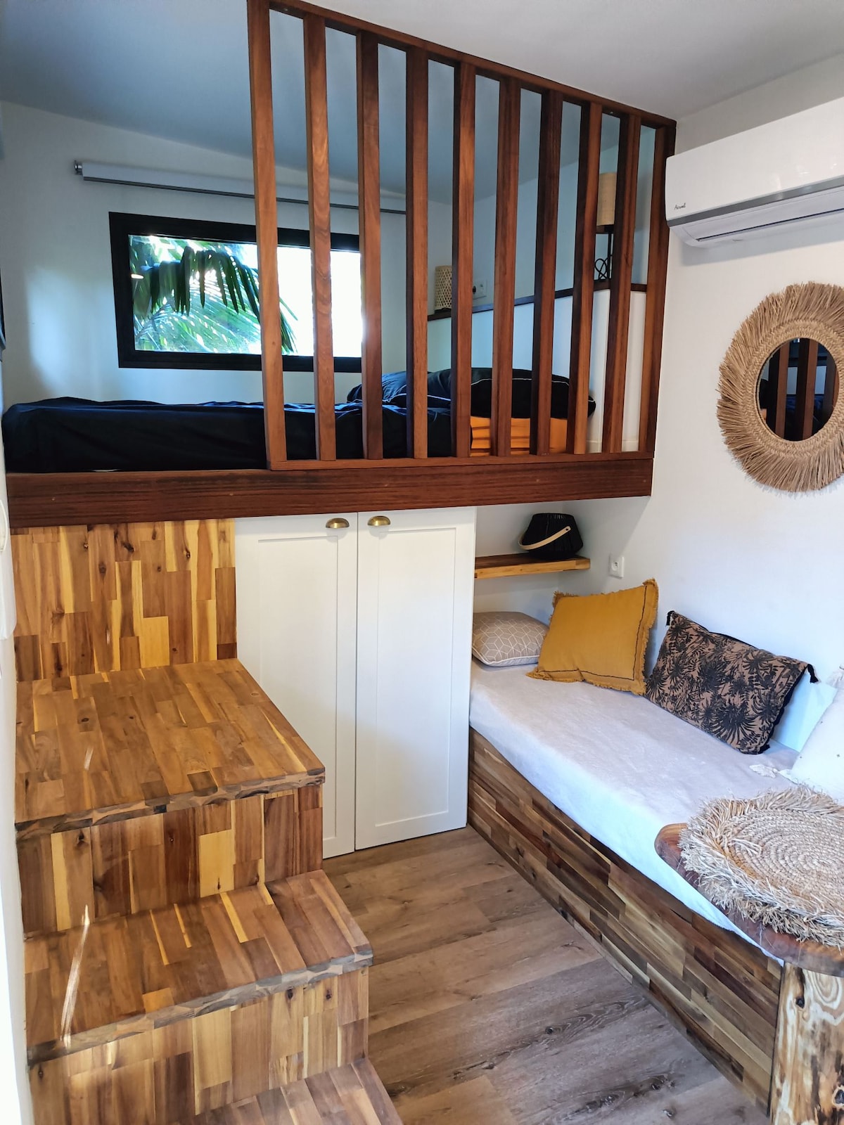 Уютный крошечный в зеленой обстановке в 5 минутах ходьбы от лагуны Эрмитаж. Рядом со всеми удобствами (пекарня, супермаркет, рестораны, а также автобусная остановка). Благодаря красивому саду с пышными пальмами и террасой он полностью оборудован, чтобы сделать ваше пребывание максимально приятным! В квартире есть кондиционер, кровать (2 места, 140/190), а также скамейка (односпальная кровать), душ в помещении и на открытом воздухе, индукционная варочная панель, микроволновая печь, холодильник и Nespresso.