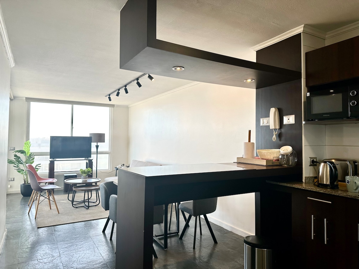 Наслаждайтесь современной и светлой квартирой с собственной парковкой, расположенной на территории кондоминиума и предназначенной для настоящего отдыха. Беспрепятственный вид на океан и набережную, удобная кровать, ванная комната с ванной и полностью оборудованная кухня с первоклассной отделкой. Быстрый Wi-Fi и телевизор Smart TV с Netflix. Все рядом: пляжи Кокимбо/Серена, Крус-Терсер-Миленио, Баррио-Инглес, порт и развлечения. Идеально подходит для спокойного отдыха в Кокимбо. Стильное жилье в центре города.