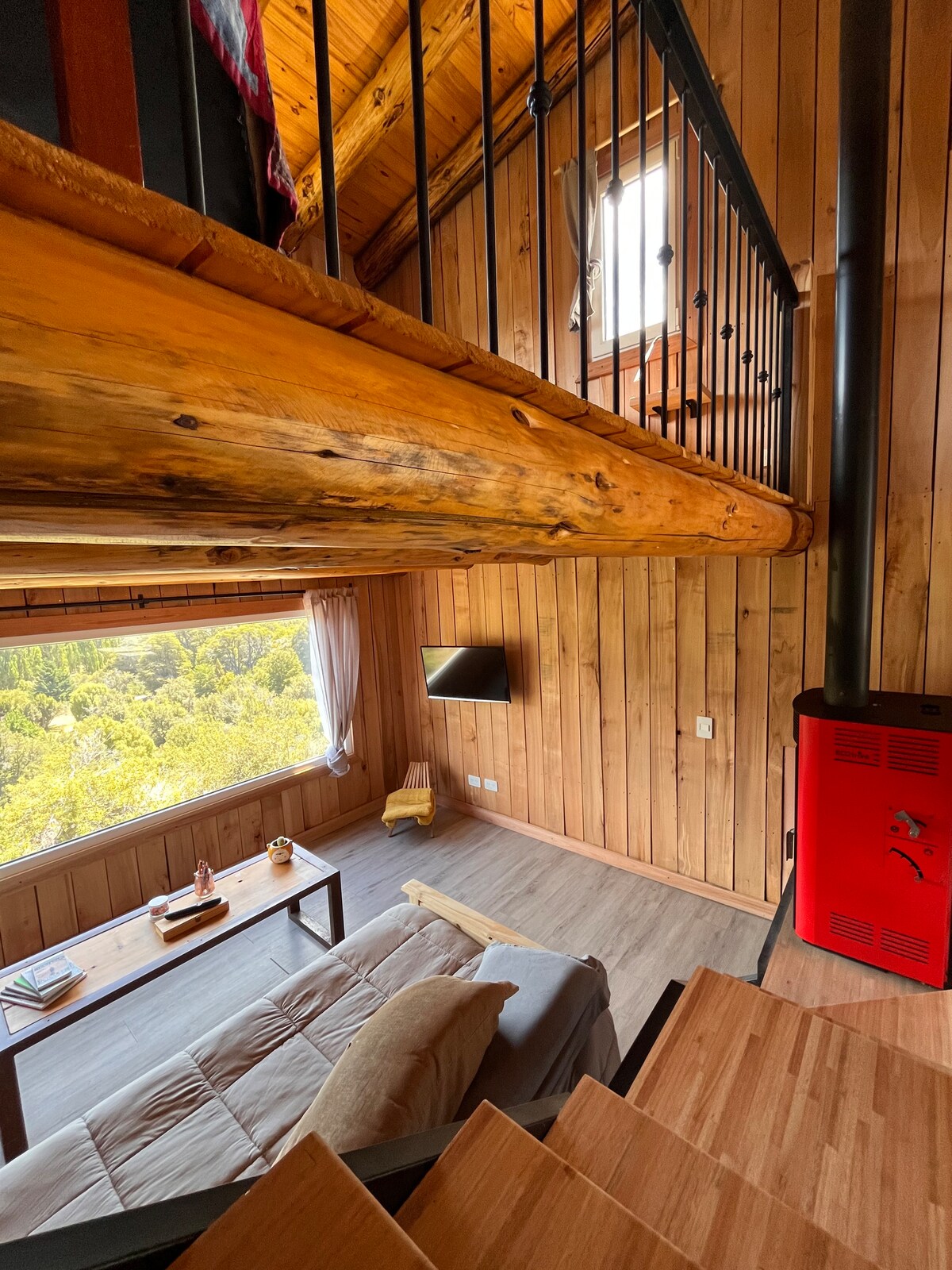 Расслабьтесь в нашем уютном горном доме и вас поразит великолепные, непревзойденные виды невероятных патагонских пейзажей. Спокойное и уникальное жилье с одной спальней с двуспальной кроватью и одной спальней с двумя кроватями и большими двухъярусными кроватями - идеально подходит для семьи. Наслаждайтесь удивительными восходами и закатами на нашей 16-метровой террасе, в окружении природы, с случайным движением над головой. Менее чем в 10 минутах от руты 40 и 20 минут от центра Сан-Мартин-де-лос-Андес.