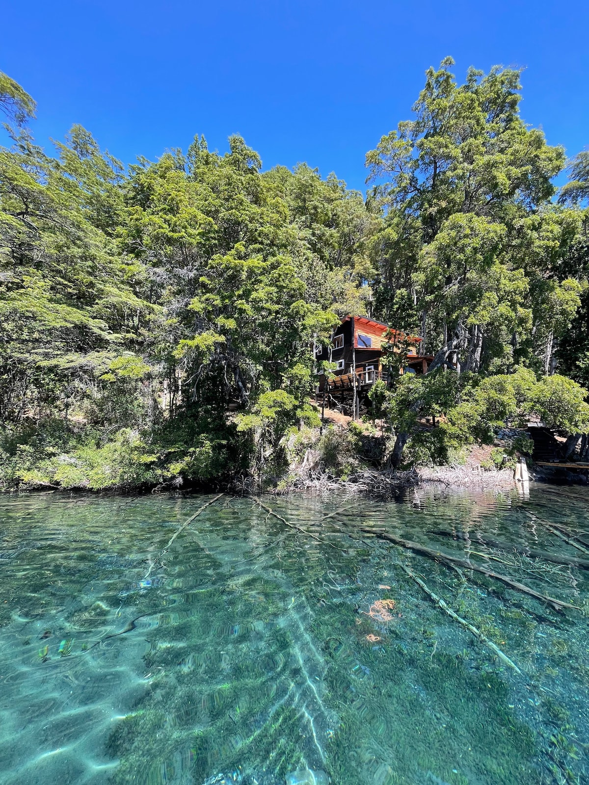 Хижина находится между озером и горным хребтом,недалеко от аргентинской границы! Чистый воздух, кристально чистая вода,природа и спокойствие, вы можете насладиться в этом особенном месте,вдали от цивилизации. Добраться до него можно только пешком и на лодке! Не на автомобиле! Мы также предлагаем прогулки на лодке по Нижнему озеру,рыбалку, а также прогулки с гидом. Домашний хлеб и кучэн,овощи (в зависимости от времени года) и джемы из нашего органического сада. Бронируйте как минимум за два дня!