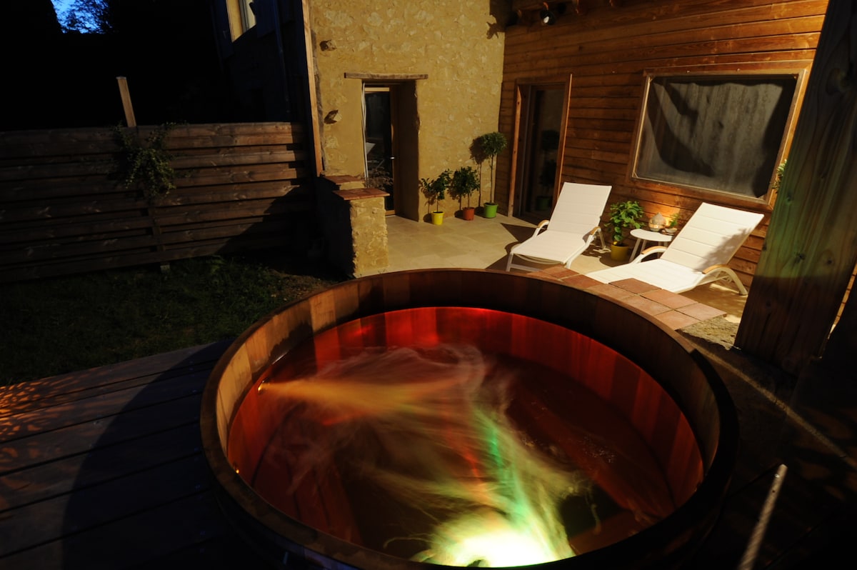 Из этого настоящего оазиса спокойствия, расположенного на территории леса площадью 3 га, открывается потрясающий вид на пруд. Ванна с подогревом древесиной при 38°C для отдыха под звездами ✨✨, под звуки лягушек и крякв. Насладитесь нежной романтической прогулкой на лодке, пешком или на горном велосипеде. Здесь время течет по-другому в уютной и расслабляющей атмосфере: настоящий момент отдыха. Кровать заправлена по прибытии. (Завтрак: 8 €/чел.) Ванна нагревается по прибытии по запросу, один раз в день.