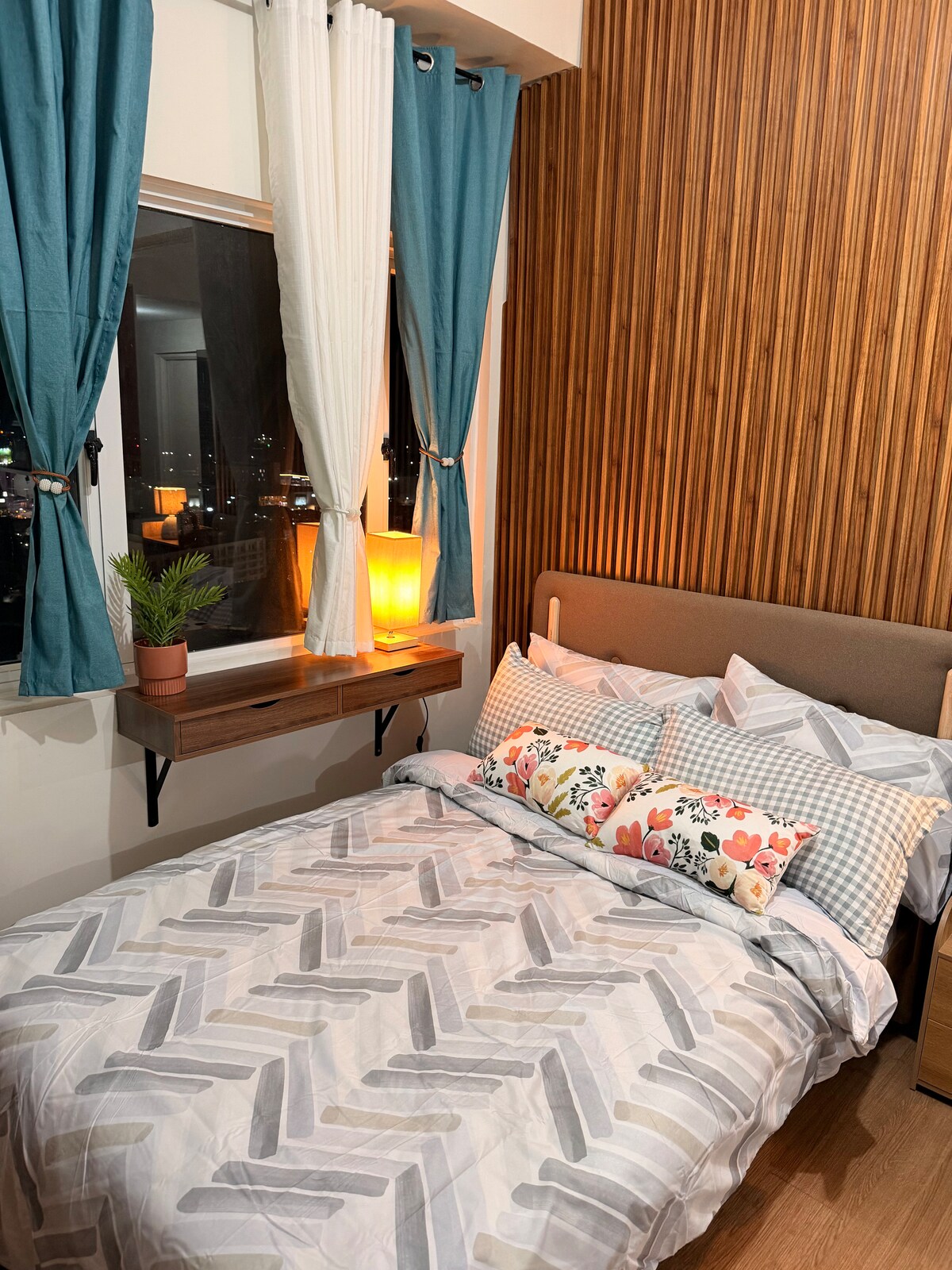 Спокойный, дизайнерский угловой блок с 1 спальней на 24 этаже Башни 1, Avida Towers Aspira — расположен над сердцем города Кагаян-де-Оро. Современный дизайн, теплое освещение, четкие линии и стильные детали создают ощущение комфорта и изысканности. Отдыхаете ли вы, исследуете или работаете удаленно, кровать размера Queen size обещает глубокий отдых, а потрясающие виды на город напоминают вам, что все, что вам нужно, находится рядом, но достаточно далеко, чтобы вы могли быть спокойны.