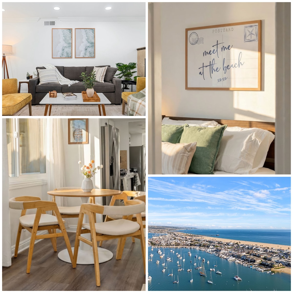 Потягивайте вино на собственной террасе на крыше, наблюдая, как парусники ловят последние лучи заката. Всего в нескольких шагах от пляжа, пирса Ньюпорта, пляжа Момс-Бич, а также ресторанов и кафе у воды. Жилье, созданное для беззаботной роскошной жизни, с редким кондиционером и парковкой в гараже. Отличное расположение — машина не нужна. В этом жилье, отмеченном знаком «Выбор гостей», есть всё необходимое: ✓ Вид на гавань с крыши ✓ Редкий кондиционер ✓ Гараж + зарядное устройство для электромобиля. ✓ Пляжные полотенца, стулья, доски ✓ Профессиональная кухня, винный и кофе-бар ✓ Душ с горячей водой на улице ✓ 75-дюймовый телевизор + Sonos + быстрый Wi-Fi ✓ Уютный газовый камин Свободные даты быстро распродаются.
