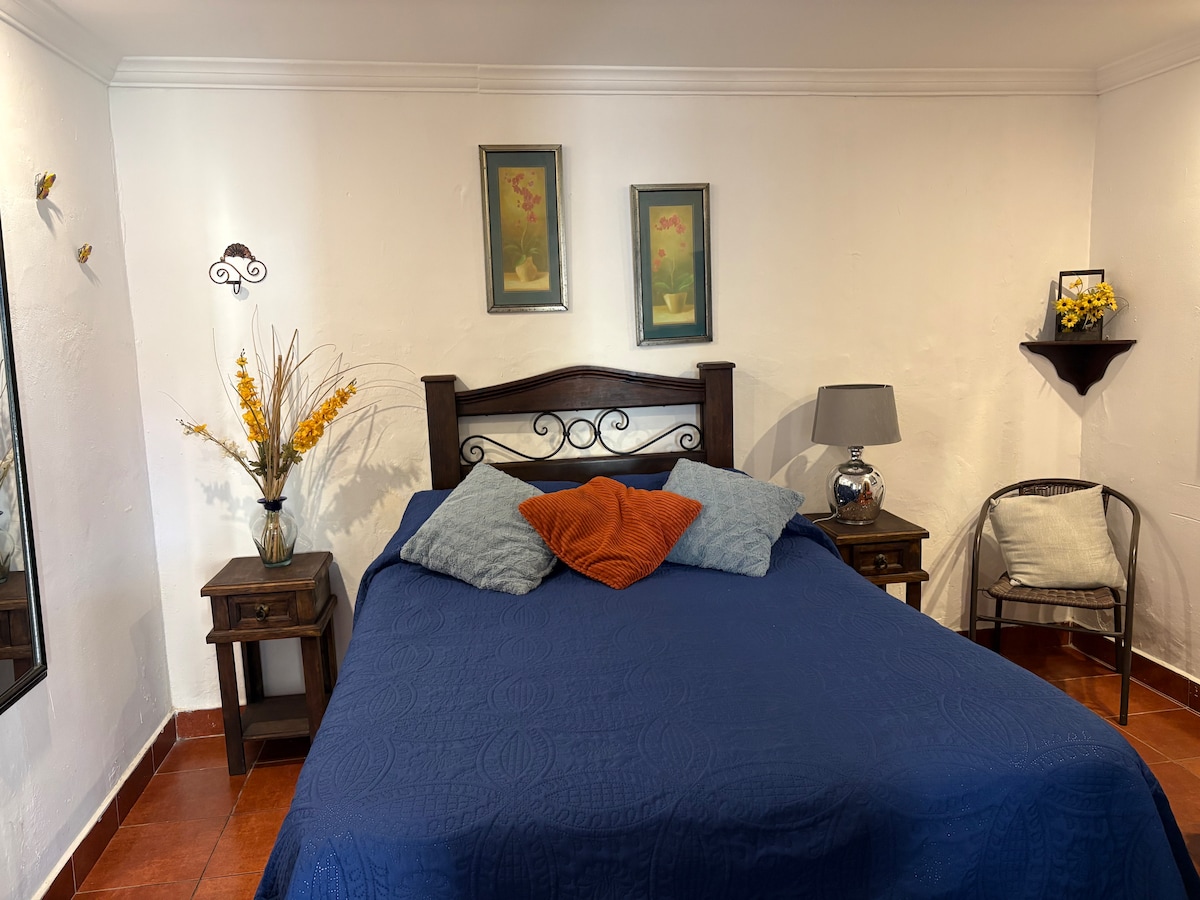 Enjoy Antigua in our house, Casa del Centro. A cozy place just 60mts from central park (1/2 block) the best in town. You can take the meals or the sun at the garden and enjoy the different lovely areas at the house. The house has a lobby, 2 rooms with queen beds. The principal room has a mezanine with a working area. Complete Kitchen, dinning and living room, laundry. The parking is free but it is located at 5 blocks. Wifi 80megas.