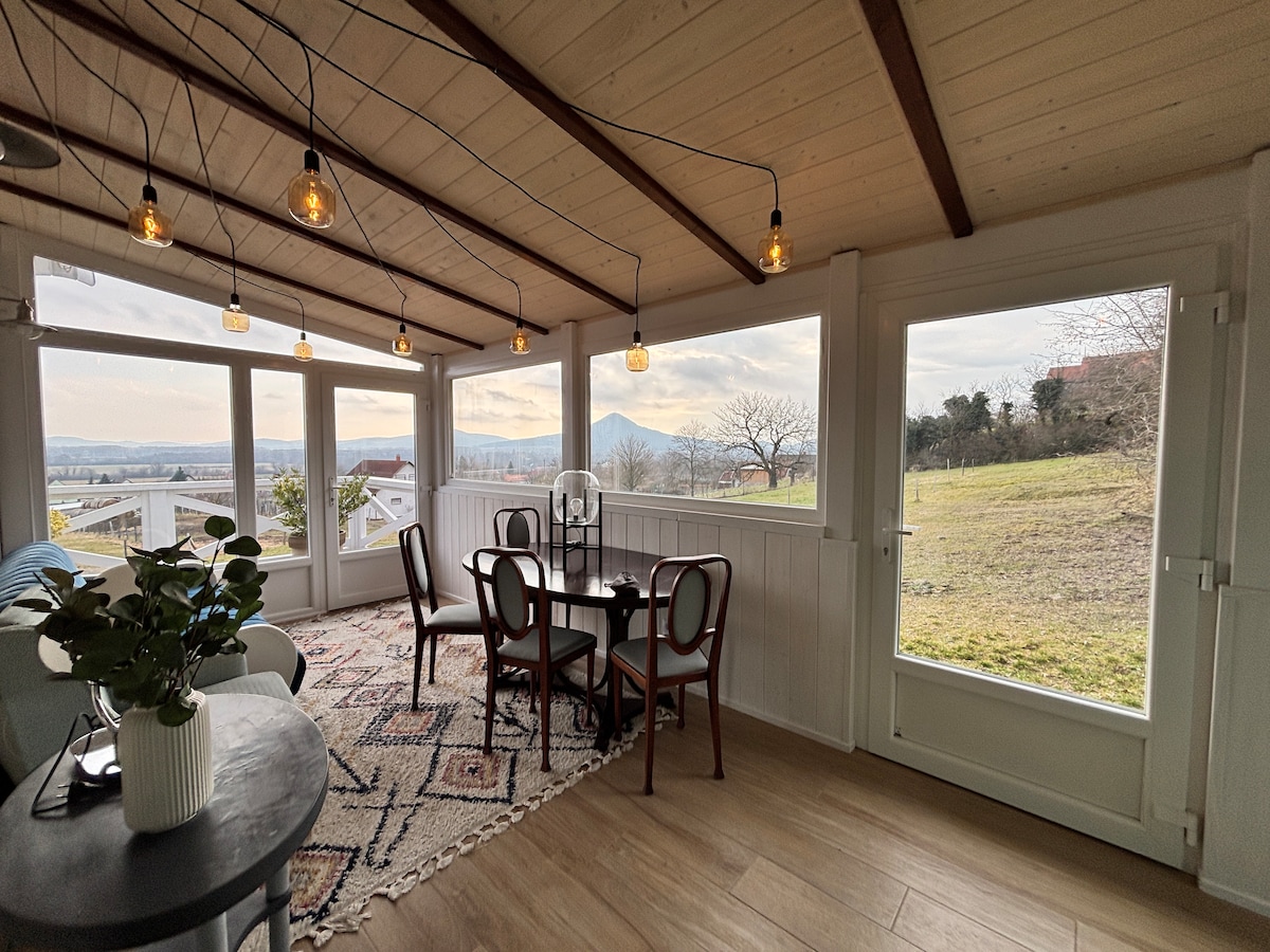 A Zsálya Vendégház egy különálló, csendes kis ház a Szent György-hegy keleti oldalán. Két szinten 4 főnek kényelmes, nyugodt pihenést kínál, gyönyörű napfelkeltével és természetközeli hangulattal. 2026-ban megújult: a terasz részben beépült, így rosszabb időben is jól használható. A részben fedett teraszról a Csobánc, a Gulács és a Tóti-hegy látszik, a túraútvonal pedig szinte a kapuból indul. Két szint, felszerelt teakonyha, kényelmes hálók, klíma mindkét szinten, csend és panoráma.