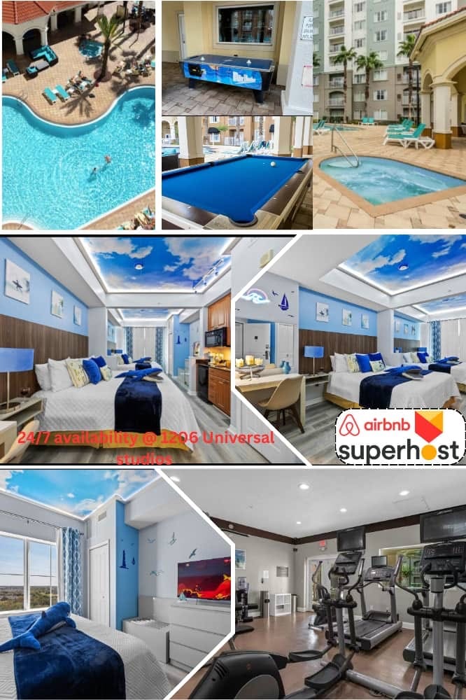 The suite is spacious, very nice with swimming pool view from windows and located just one block from famous international Drive. The suite is just walking distance to shops, nightlife, restaurants, boutiques, easy access to the Orlando International Airport and close to all orlando major attractions: Convention center (5 min.) Universal/vocano bay (7 min.), Disney world (15 min.), Seaworld (7 min.), Millenia Mall & Outlet mall (10 min.) and Orlando international airport (20 min). FREE PARKING