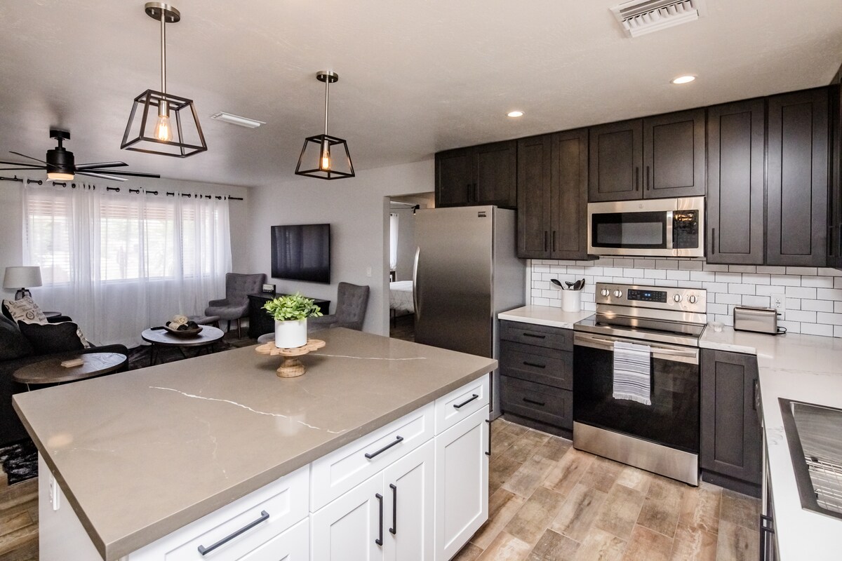 Недавно отремонтированный дом недалеко от центра озера Гавасу. Жилье расположено всего в 1 миле от Лондонского моста и в 6 минутах езды от стартового пандуса на пляже Виндзор-Бич. В нескольких минутах ходьбы от нескольких ресторанов, магазинов, кофеен и многого другого! Отличное место, чтобы взять с собой лодку или другие игрушки! Этот дом недавно полностью отремонтирован с 3 спальнями, 2 ванными комнатами с кварцевыми столешницами на кухне, а также ванными комнатами. В главной ванной есть душевая кабина с большой отдельно стоящей ванной.