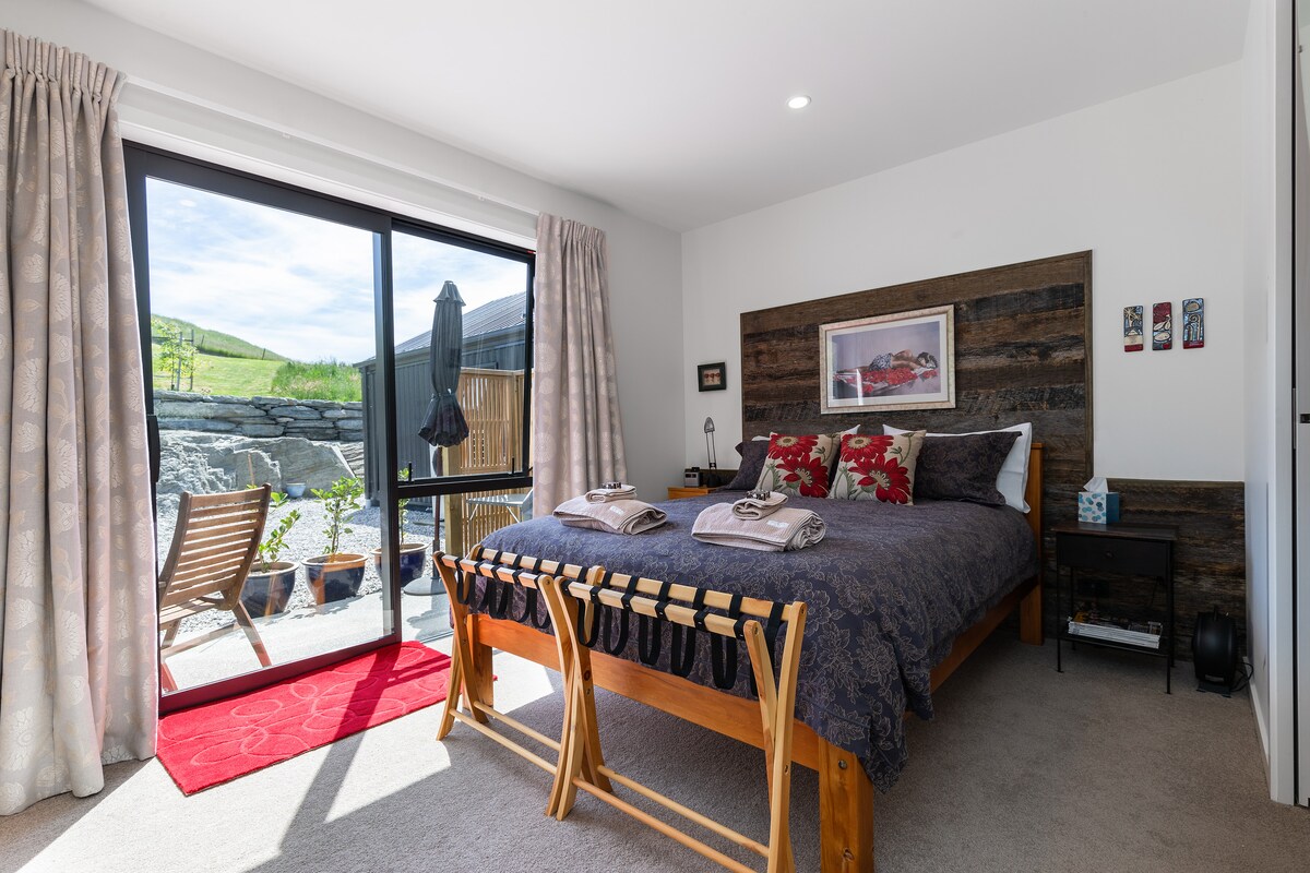 Save 30% off 28 nights or 15% off 7 nights+a bottle of local Pinot Noir. Set in a quiet rural area on 3 acres just 10 mins drive from Arrowtown or Queenstown. Solar powered. Fast wifi & free parking. Get ahead of the traffic setting off on your daily activities. Self-contained unit with cozy lounge&fire. Run by long term locals. Registered accom with local council. Free continental breakfast up to 6 nights-not included for 7+night specials.