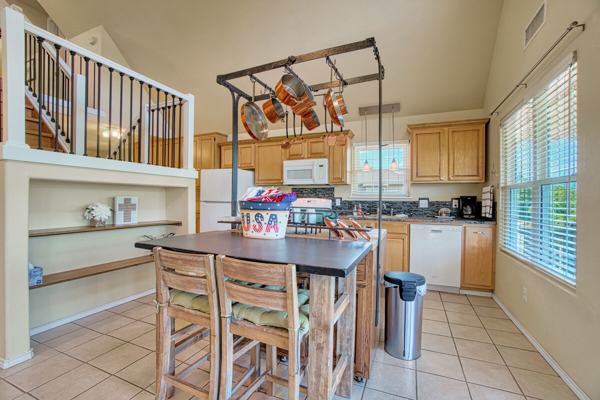 Хижина в деревенском стиле, но элегантная, каменная стена на кухне с фартуком, мясными шкафами и приборами из нержавеющей стали. В главной ванной есть камин из камня, пятнистые бетонные полы, глубокая ванна. В хижине внизу есть спальня и ванна, а наверху - спальня и ванна. К услугам гостей 4-местная гидромассажная ванна в частном крытом патио. Eagles Nest расположен у подножья гор Уичита, что создает потрясающую атмосферу хижины. «Eagles Nest - это дом вдали от дома.