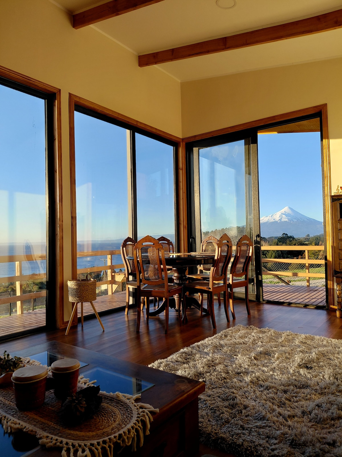 Современный дом с потрясающим видом на озеро и вулкан