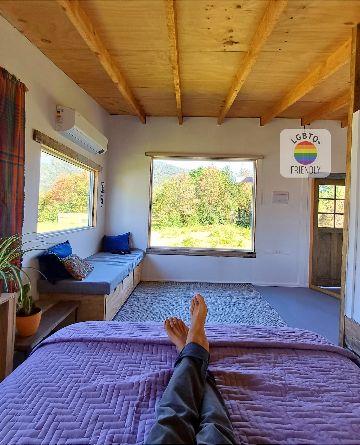 The Tiny House is for 2 persons. We have a heated wooden bath tub with an additional cost of 30000 Pesos for 4 hours of use. It has to be scheduled with 24 hrs in advance. It has a queen bed, internet,TV, kitchen, Micro wave. In a millenary forrest among Alerces, Peumos, etc. We are just 20 minutes away from Puerto Varas, 20 minutes away from Puerto Montt and 40 Minutes away from the airport. The check in is between 15:00 and 17:00 hrs and check out at 11:00 am.