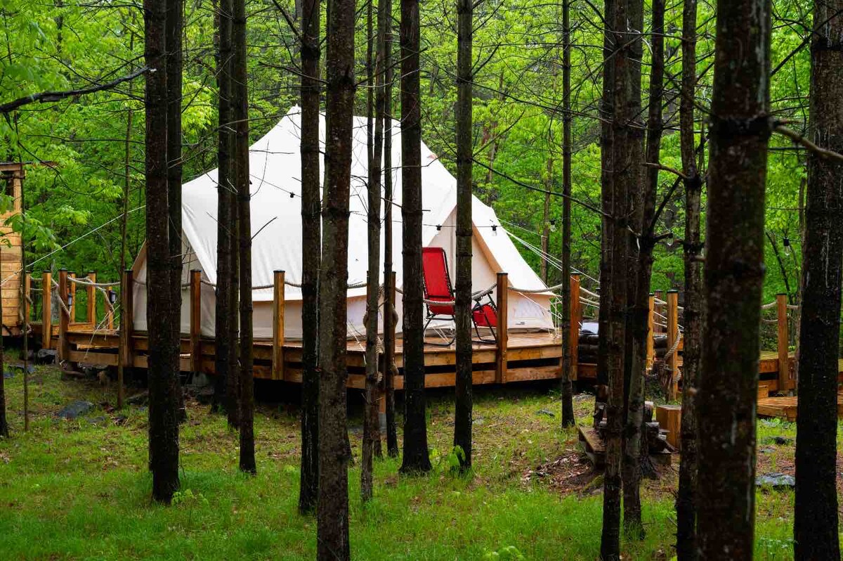 Глэмпинг! Суперуединенная палатка Bell Tent 16 футов на 75 акрах!