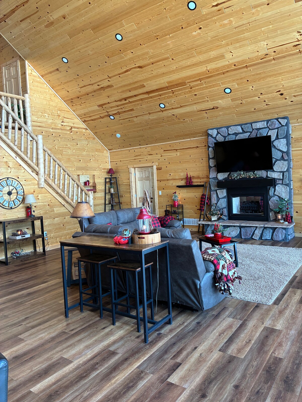 Вот и все! Наше жилье - отличное место для вашей большой семьи или группы, чтобы кататься на лыжах, снегоходах или просто отдыхать. Мы предлагаем достаточно места с 5 отдельными спальнями. У нас есть открытая зона, включая ОГРОМНУЮ гостиную и кухню. Здесь есть 2 камина. Газовый камин в гостиной, и если вы предпочитаете дрова, на кухне есть дровяной камин. Пора убирать, у нас есть 3 полноценные ванные комнаты с шампунем, кондиционером, мылом. Затем сауна и джакузи для отдыха. Также есть комната отдыха с Wi-Fi.