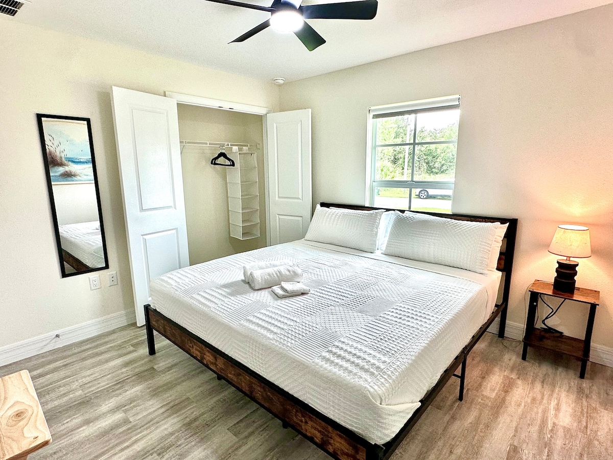Наслаждайтесь спокойным образом жизни во Флориде в этом прекрасном прибрежном коттедже. Этот новый дом с 2 спальнями и 2 ванными комнатами расположен недалеко от Северного порта и порта Шарлотта с легким доступом к шоссе, в нескольких минутах ходьбы от магазинов и ресторанов и менее чем в 30 минутах езды от нескольких потрясающих пляжей побережья Мексиканского залива. В этом меблированном отпускном жилье с комфортом могут разместиться 6 человек! ОБРАТИТЕ ВНИМАНИЕ: из-за урагана Ian мы потеряли забор.