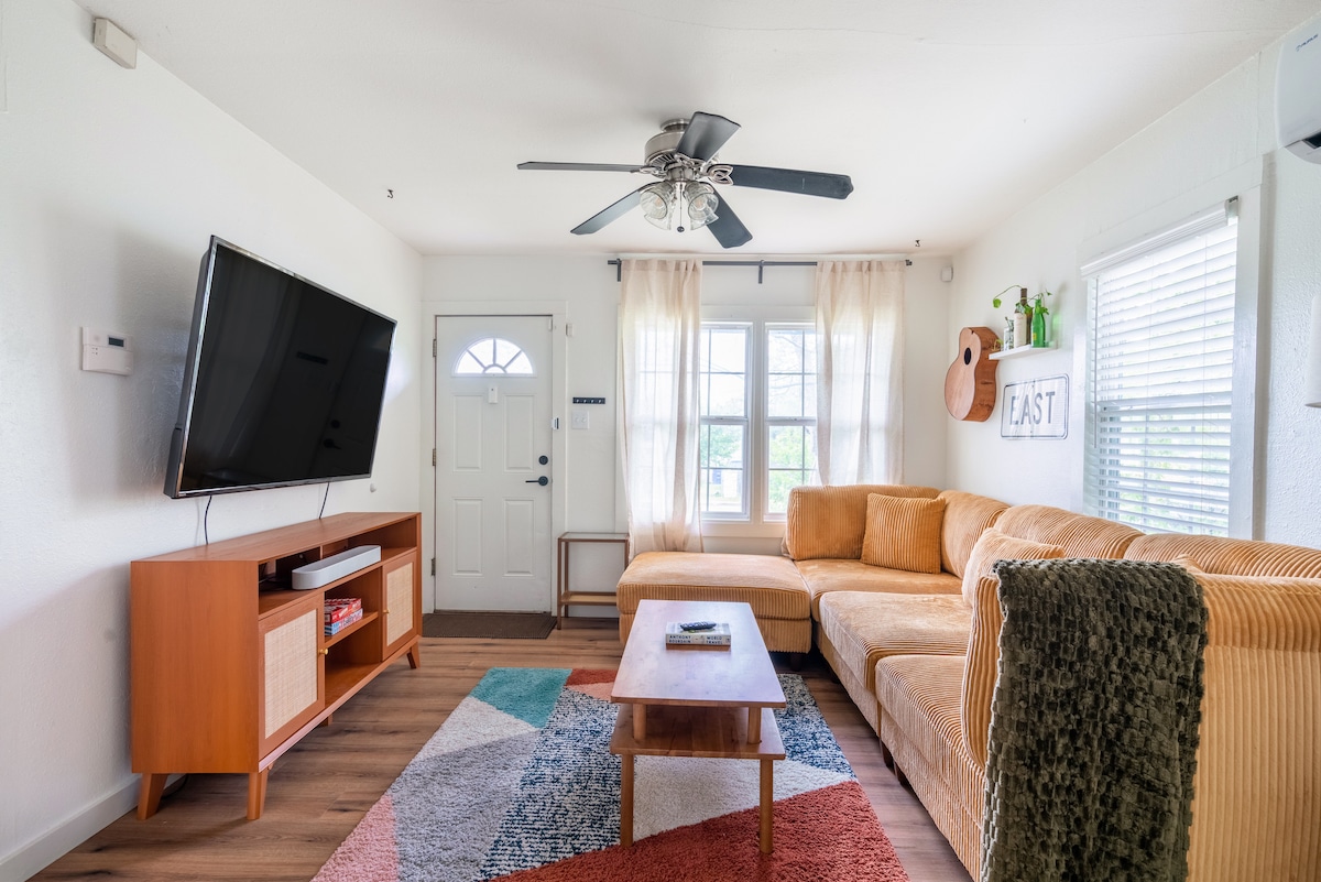 Насладитесь аутентичным отдыхом в Остине в этом семейном доме с 4 спальнями и 2 ванными комнатами, расположенном в центре города. Просторные комнаты, постельное белье из хлопка премиум-класса и пуховые одеяла обещают спокойный сон. Отдохните на свежем воздухе в крытой обеденной зоне с костровой ямой и гамаком. Бесплатная парковка на территории. Смотрите Disney+ и ESPN на 75-дюймовом телевизоре. Рядом с лучшими местами: ресторанами Franklin BBQ и Birdie's, ночными клубами на Рейни-стрит, концертным залом Moody Center, Капитолием и кампусом Техасского университета. Идеально подходит для семей или групп, желающих погрузиться в яркую культуру центра Остина.