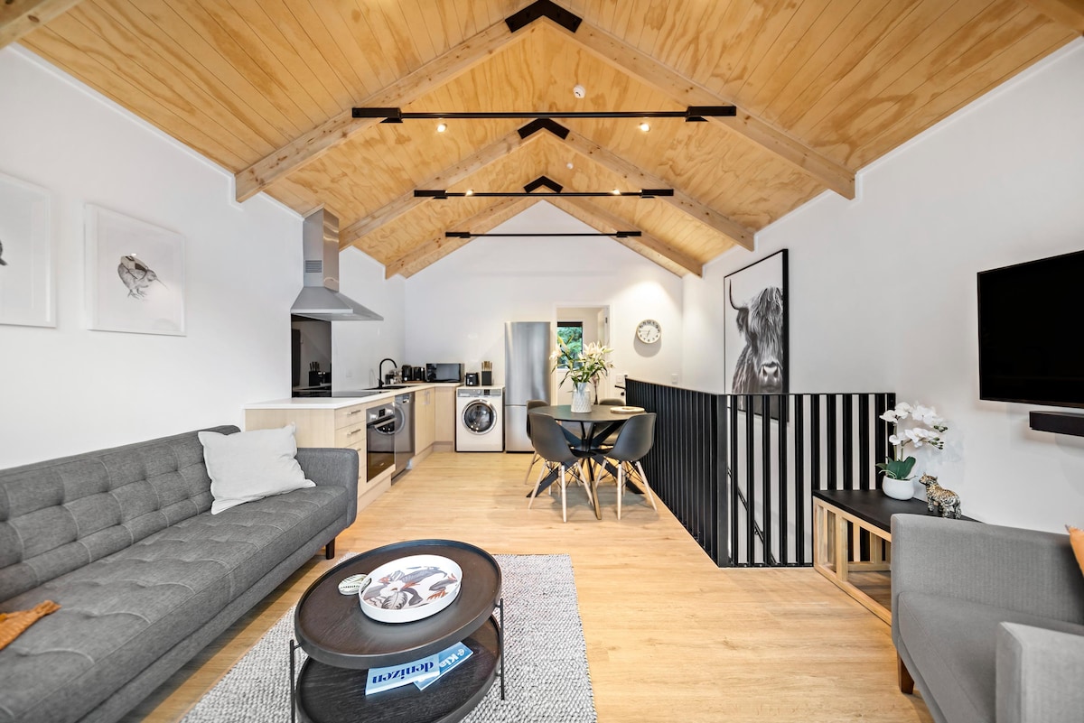 Welcome to the QT Project-Urban loft. Brand new 1 bedroom apartment on the top floor of Queenstown's newest boutique complex. Located in Queenstown central, just 5 minutes walk to the city centre, this unique apartment is perfect for a couple or small family with a Queen bed in the seperate bedroom and a luxe sofa in the living area. A/C, WIFI, Netflix, Private carpark and gym use provided. Double glazing + heat pump means this is a cosy place to enjoy a winter getaway.