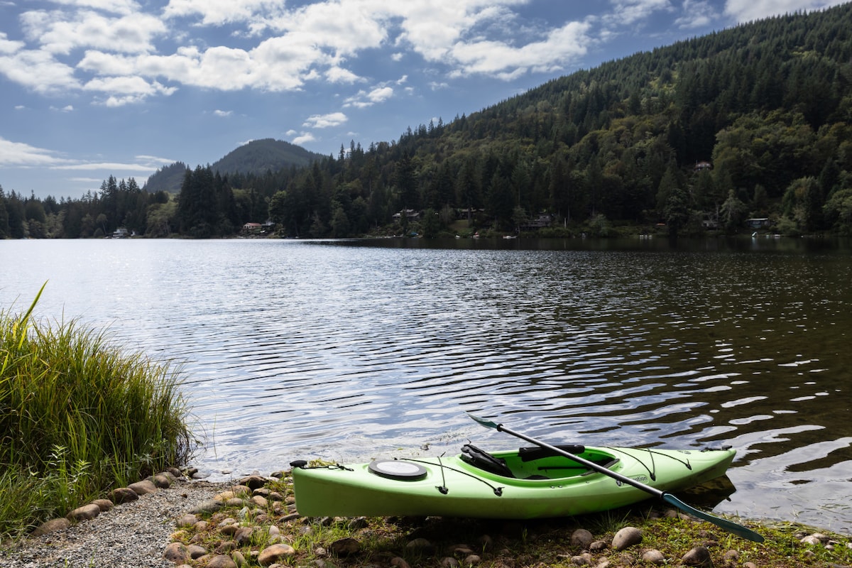Отдохните на уединенной вилле у озера Кейн, окруженной деревьями. Этот уютный дом с двумя спальнями, расположенный между Беллингемом и Маунт-Верноном, идеально подходит для пар, одиночных путешественников или небольших семей, желающих отдохнуть на природе. Начните день с кофе на просторной террасе, окруженной вечнозелеными деревьями, пройдите по тропинке к своей собственной кедровой сауне или покатайтесь на доске для сапсерфинга или каяке по спокойному озеру, где можно плавать. Попробуйте свои силы в рыбалке на озере, где нет моторных лодок.
