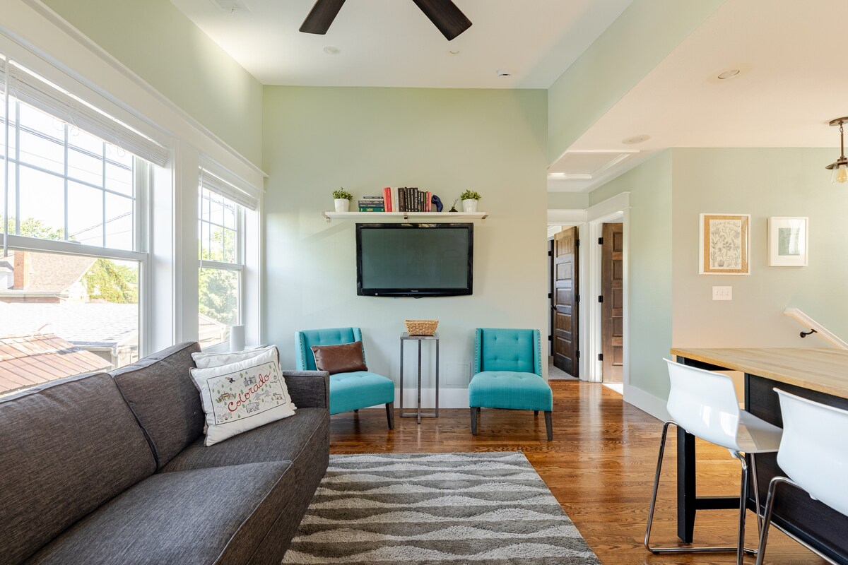 **Top location in Denver**, our 600+ sf second-story carriage house offers a serene escape amidst North Denver treetops. One block from the vibrant Tennyson Street business district, this charming guesthouse places you within walking distance of Denver's best restaurants, bakeries, boutiques, breweries, parks & grocery stores. Our newly built, quality-prioritized guesthouse is an oasis equipped with everything you need, just 10 minutes from downtown Denver and with easy access to I-70.