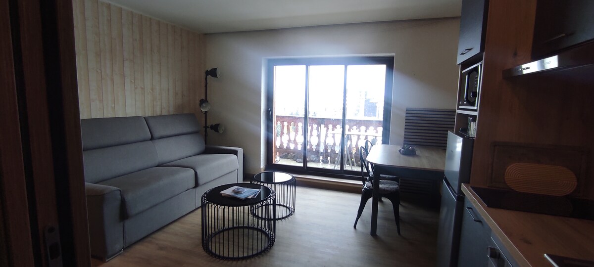 Рядом со всеми удобствами, рядом с бассейном, катком, спортивным залом, склонами и подъемниками, бесплатный трансфер у подножия здания, бесплатная парковка рядом. Все удобства: двухъярусные кровати, ванная комната (душ-туалет), мини-кухня с индукционной плитой, посудомоечная машина, духовка, холодильник, тостер, кофеварка, чайник…, гостиная с диваном-кроватью 140 см, телевизор 82 см, журнальный столик…, горный декор, балкон, великолепный вид на юго-запад, лыжная комната, стиральная машина наверху.